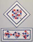 Kit includes fabric for top and binding for 17" x 40" runner and 24" square topper